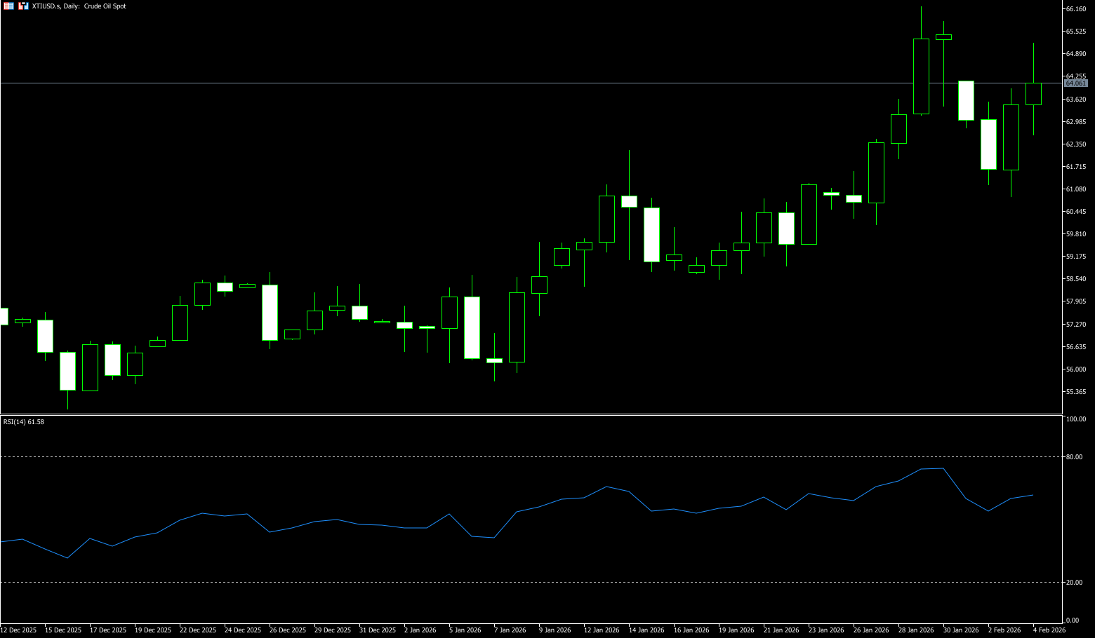 From the daily chart, the $64 (psychological level) and $64.50 levels have become key areas of short-term bullish and bearish struggles. This level is both the starting point of the previous rebound and an important support zone on the daily chart. If this support area fails to hold, a further downward correction may occur on the daily chart, with the potential pullback to $61.10 (the 20-day moving average), followed by $60 (a psychological level). Conversely, if the price stabilizes and consolidates effectively in the $64.00-$64.50 area, a technical rebound is possible, but its extent will still be limited by the moving average system above. On the upside, the $64.50-$64.00 range constitutes significant technical resistance; this area is not only a previous consolidation platform but also a densely packed area of short-term moving averages. A break below this level would target $66.24 (the high of January 29th).