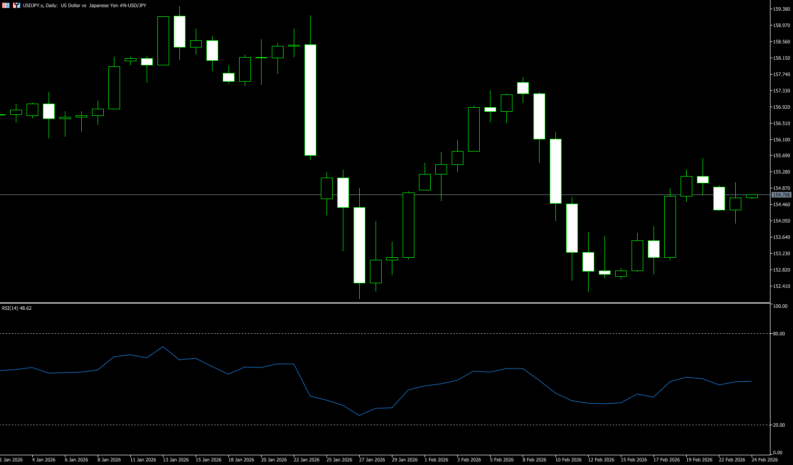 In early Asian trading on Monday, the USD/JPY pair faced selling pressure, falling back to around 154.00. The USD/JPY weakened due to tariff uncertainty. The US January Producer Price Index (PPI) report will be in focus later Friday. On Saturday, US President Trump announced an increase in global tariffs from 10% to 15% to maintain protectionist trade measures and launch several other investigations. Meanwhile, Japan's national consumer price index rose 1.5% year-on-year in January, compared to 2.1% in December. This figure is the lowest since March 2022, in line with the Bank of Japan's target. This could put pressure on the yen and limit the downside for the currency pair. Following Prime Minister Sanae Takaichi's victory in the quick election, traders will be closely watching potential fiscal spending plans. Prime Minister Takaichi stated last Friday that necessary spending would be funded as much as possible through the initial budget. She further noted that the debt-to-GDP ratio would be steadily reduced to restore fiscal sustainability.