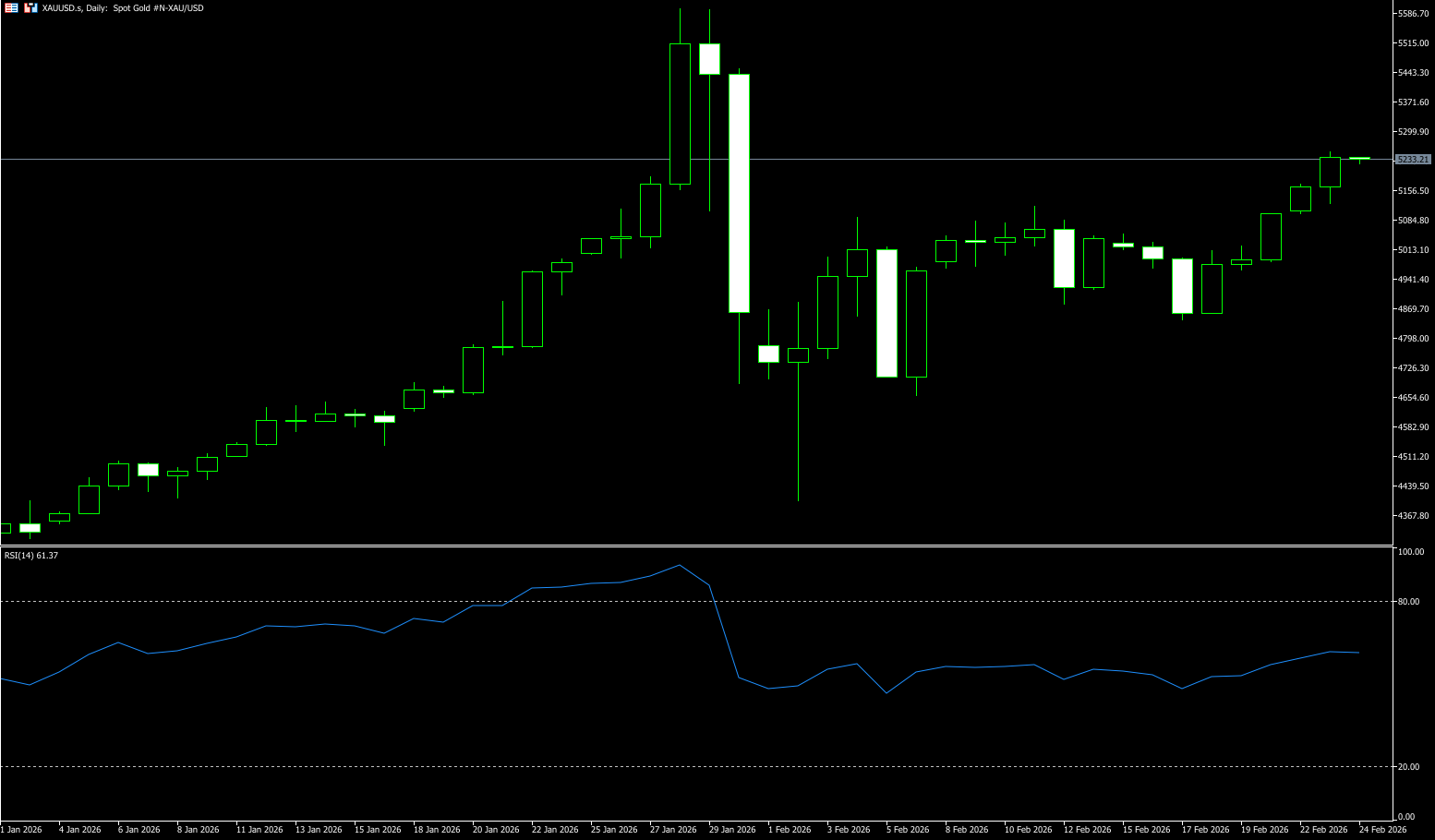 The daily chart shows that the 14-day Relative Strength Index (RSI) is above the 60 level, supporting a short-term bullish bias. The MACD histogram is narrowing in negative territory, indicating easing bearish pressure. Currently, the technical outlook for gold has turned neutral to bullish, but a break above the $5,182.30 (January 27 high) and $5,200 (psychological level) areas is needed to drive further upward movement. Once these levels are broken, the next resistance level will be $5,300, followed by the $5,450 area (January 30 high). On the downside, the psychological level of $5,000 provides key support; a break below this level could see gold test the $4,840 (last week's low) and $4,832 (38-day simple moving average) areas.