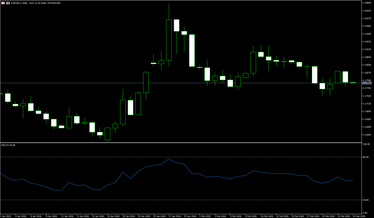 On the daily chart, EUR/USD is trading between 1.1790 and 1.1800. The 20-day simple moving average (SMA) is sloping downwards and above the price, emphasizing continued selling pressure. The 20-day SMA at 1.1855 acts as initial resistance for EUR/USD. The 14-day Relative Strength Index (RSI) remains near 50, indicating a continued easing of bearish pressure. Currently, the technical outlook for gold has turned neutral to bullish, but a break above the 20-day SMA at 1.1855 and the 1.1877 area (last week's high) is needed for EUR/USD to have a chance to challenge the 1.1900 psychological level and the 1.1926 level (February 9 high). Additionally, the 61.8% Fibonacci retracement level from the low of 1.1590 to the high of 1.2026 is at 1.1757, a key technical level. A close below this level would expose the 1.1700 psychological level. Then there's the 78.6% Fibonacci retracement level at 1.1683.