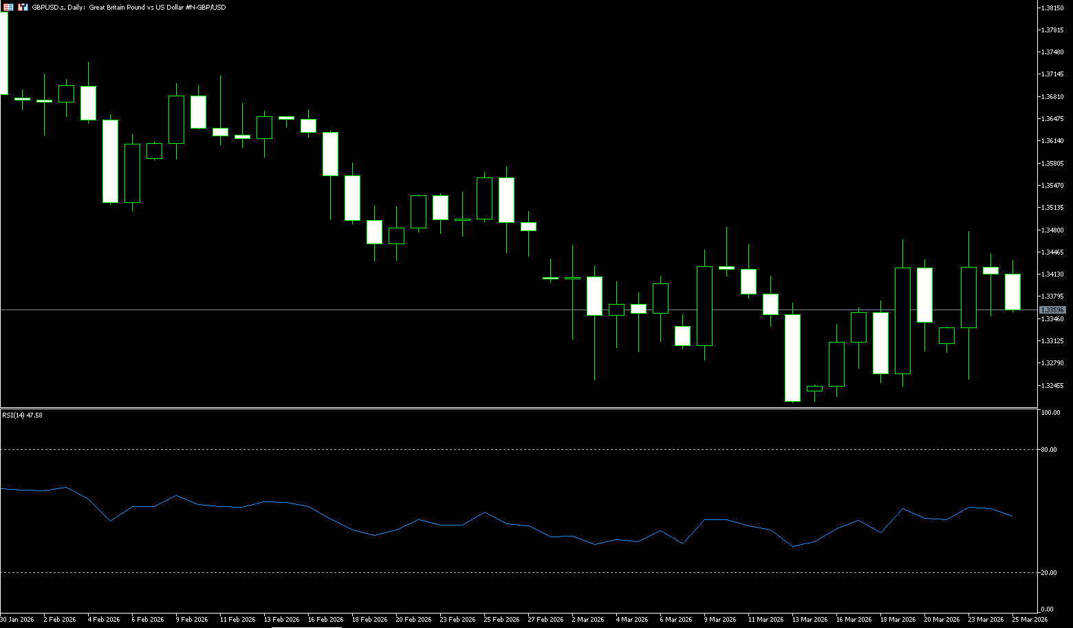 The pound traded near $1.34 on Wednesday as investors reacted to weaker-than-expected PMI data and escalating tensions in the Middle East, increasing concerns about an energy shock. UK business activity growth slowed to its lowest level since September 2025, with the war in Iran dragging down growth and significantly pushing up inflation. Manufacturing cost growth accelerated at its fastest pace since "Black Wednesday" in 1992. Meanwhile, markets remain focused on developments in the war. US President Trump announced a five-day delay to planned strikes on Iranian energy infrastructure, claiming "positive negotiations" were underway, although Tehran denied this, reports suggest indirect talks are ongoing. The recent surge in energy prices has led investors to increase bets on policy tightening this year, with markets now expecting multiple rate hikes from the Bank of England, a stark contrast to the two rate cuts anticipated before the conflict.